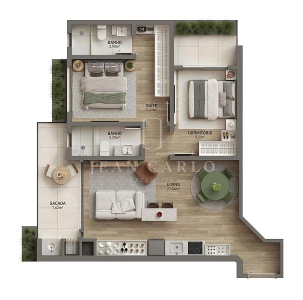 Com uma estética elegante e atemporal, o projeto valoriza linhas limpas, materiais nobres e espaços pensados para proporcionar qualidade de vida em cada detalhe. A presença do verde não é apenas um complemento, mas parte essencial da experiência, trazendo leveza e uma sensação constante de respiro em meio à rotina.