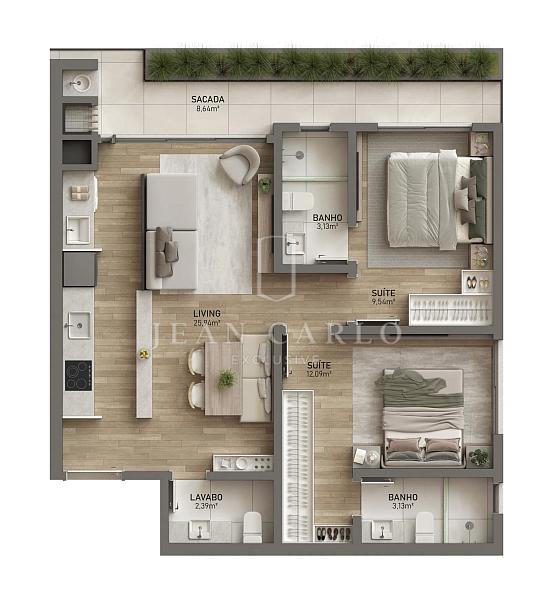 2 dormitórios (2 suítes)