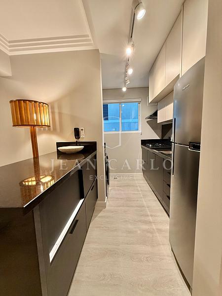• Apartamento impecável, novo, mobiliado finamente com projeto arquitetônico único, climatizado e decorado.