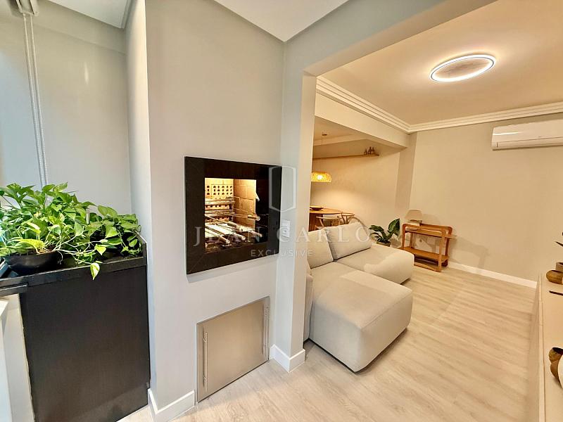 • Conta com 02 dormitórios (sendo 01 suíte), 67m² área privativa, living integrado, cozinha sob medida, banheiro social e sacada com churrasqueira a carvão com fechamento em Reiki. Conta 02 vagas de garagem individuais e Hobby box.