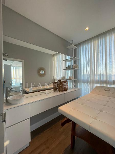 • Com amplos quartos, distribuídos em uma área privativa de 120 m², incluindo 03 suítes espaçosas, onde você terá todo o espaço necessário para relaxar e desfrutar de momentos de tranquilidade. Sala de TV integrada com sala de jantar, cozinha americana, lavabo, ampla lavanderia, e tudo isso com vista para o mar, conta com 2 vagas de garagem. Todos os aptos contam com home box e serviço de praia no verão.