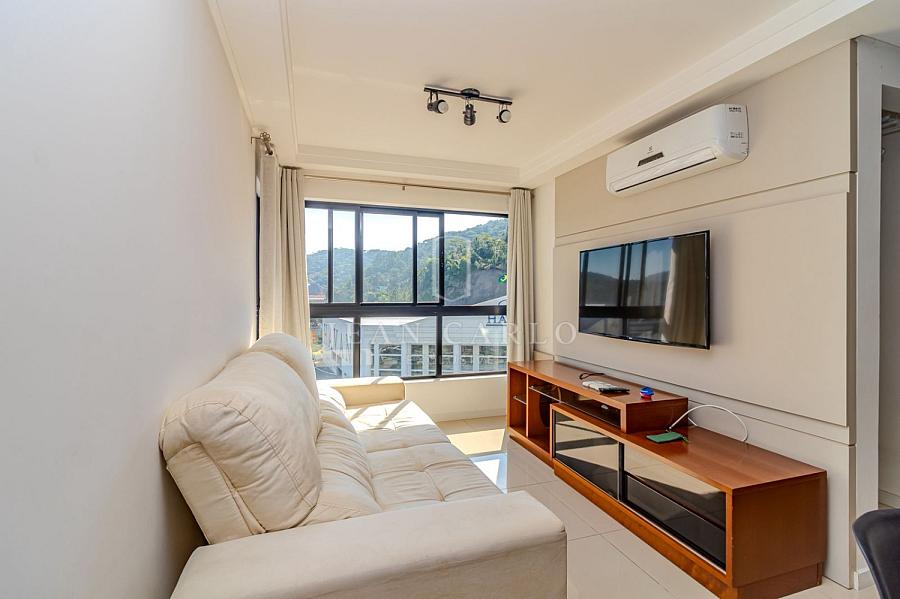 • Sala de estar aconchegante com televisão, integrada à sacada.