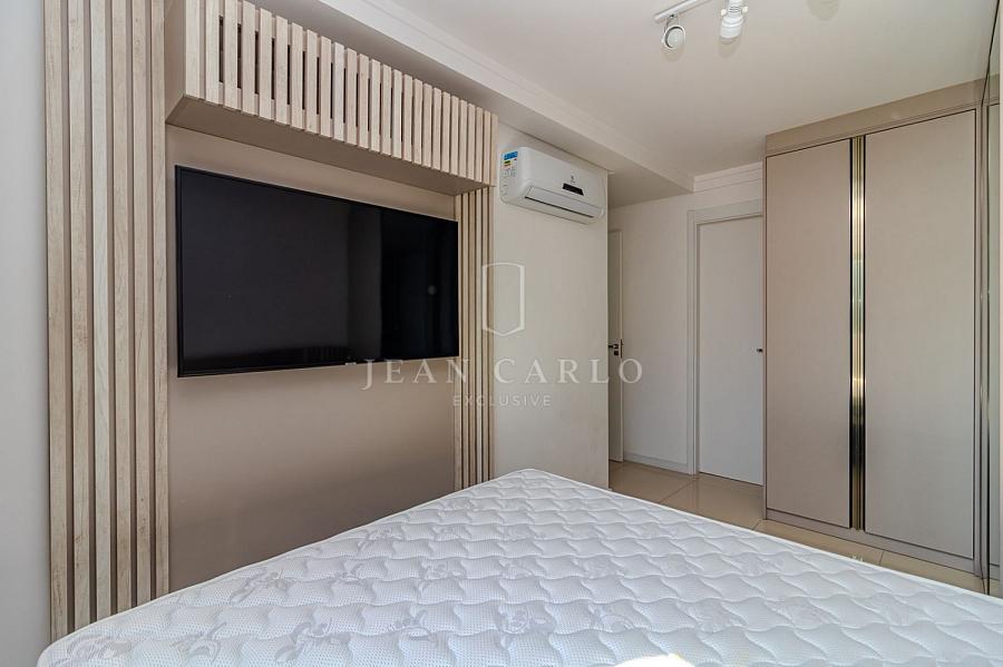 • Suíte com armários planejados, ar-condicionado e televisão.