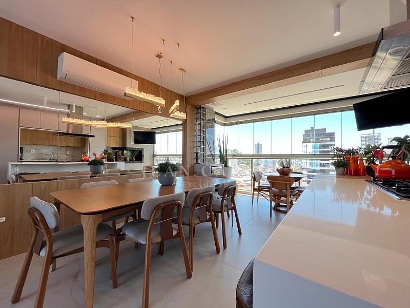Apartamento amplo com 122m² de área privativa, 3 quartos sendo 2 suítes e 1 dormitório, lavabo, área de serviço independente, sala de estar, sala de jantar conjugada com a cozinha, sacada integrada com churrasqueira à carvão. Acompanham o apartamento 2 vagas de garagem e 1 hobby box.