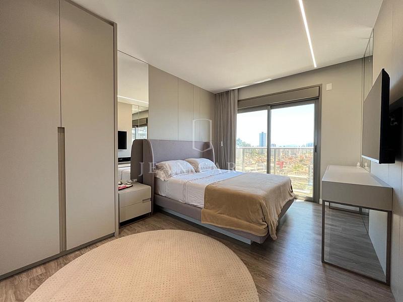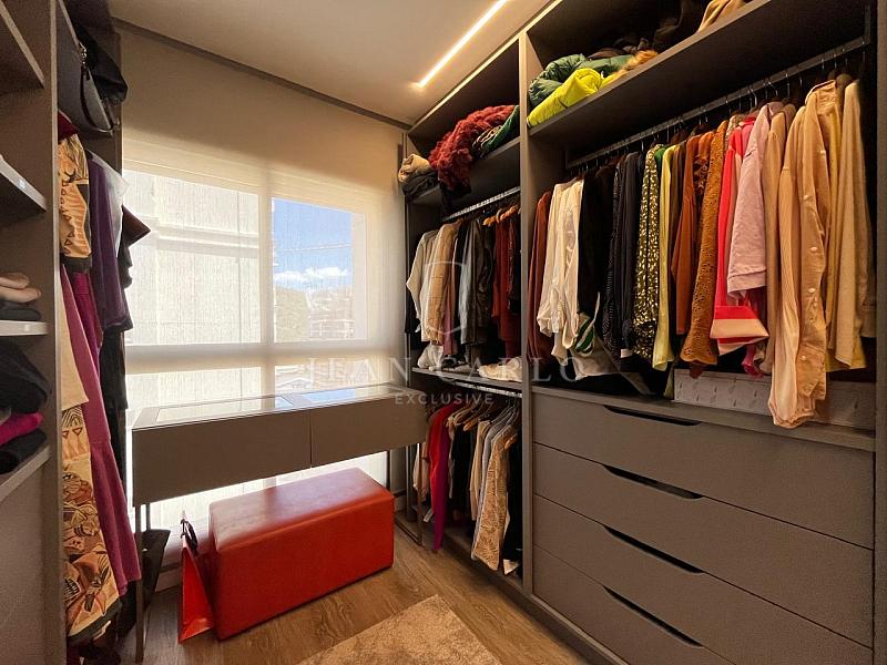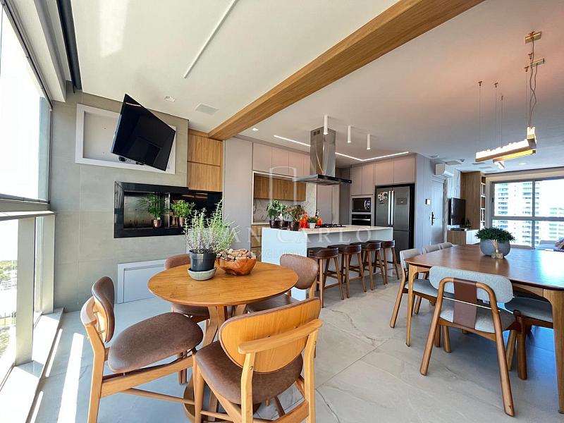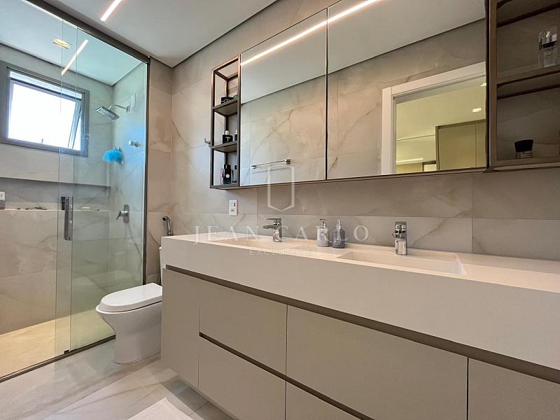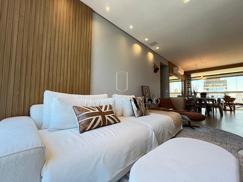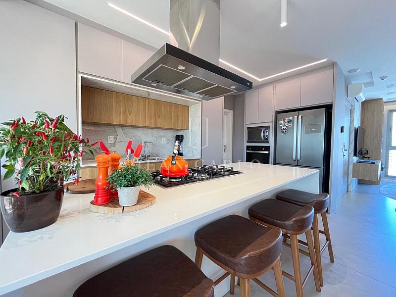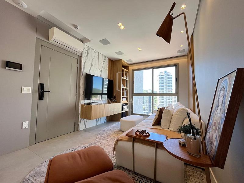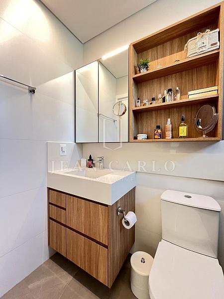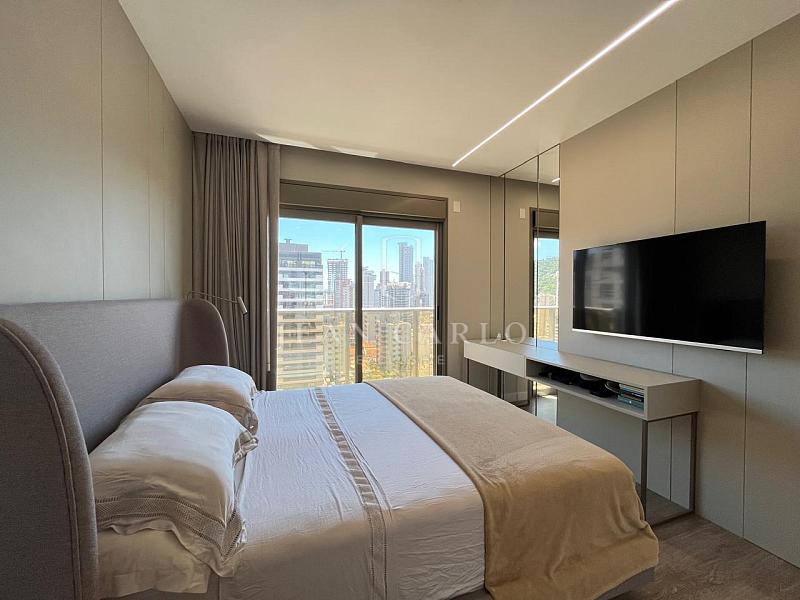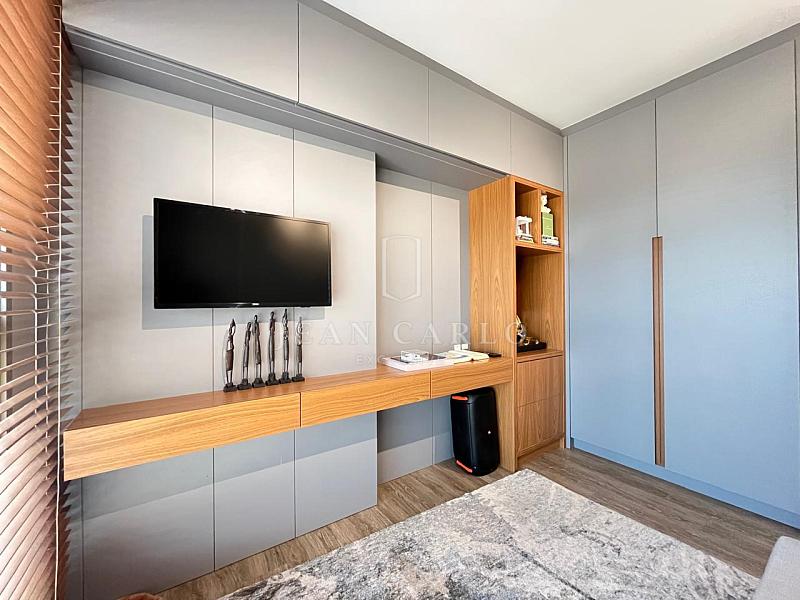 O apartamento está finamente mobiliado, decorado e equipado, com móveis planejados em todos os ambientes, piso em porcelanato nas áreas sociais e molhadas e vinílico nos dormitórios. Saem apenas itens pessoais de decoração e consumo, roupas e enxoval de louças, talheres e panelas. Ficam todos os elétros, móveis fixos e soltos, tapetes, cortinas e persianas (que inclusive são automatizadas) e ar condicionados instalados.