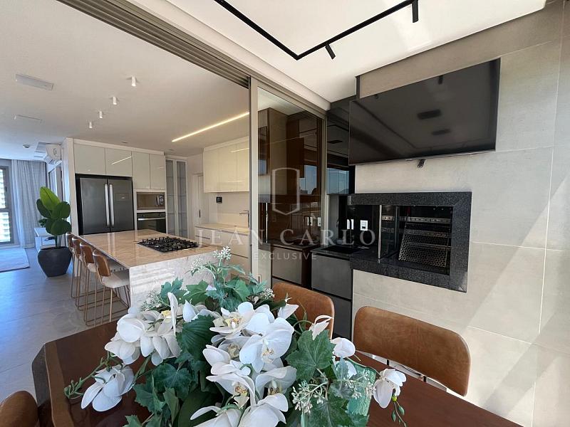 Apartamento amplo com 132m² de área privativa, 3 suítes, lavabo, área de serviço independente, sala de estar, sala de jantar conjugada com a cozinha, sacada com churrasqueira à carvão e fechamento em reiki. Acompanham o apartamento 3 vagas de garagem e 1 hobby box.