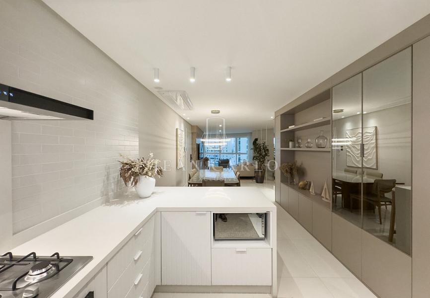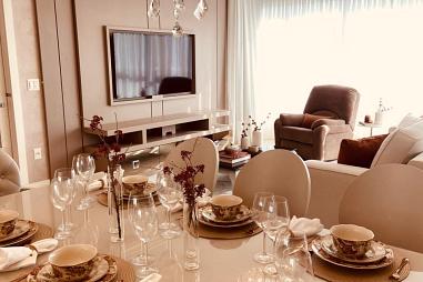 A área social foi inteligentemente integrada, permitindo a entrada abundante de luz natural e criando uma atmosfera de conforto e amplitude. A cozinha gourmet, o living espaçoso e a varanda com vista deslumbrante tornam o espaço perfeito para receber bem e aproveitar momentos especiais em família.