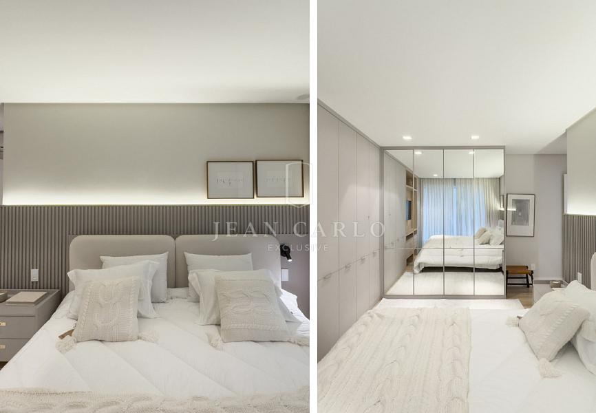 Os dormitórios foram desenhados para garantir privacidade e aconchego, com suítes elegantes e bem distribuídas. Cada elemento do projeto — do piso ao teto — exala bom gosto e sofisticação.