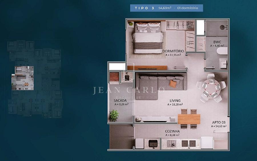 54,63 m² de área privativa