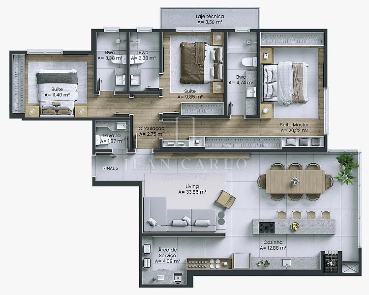 3 dormitórios (3 suítes)