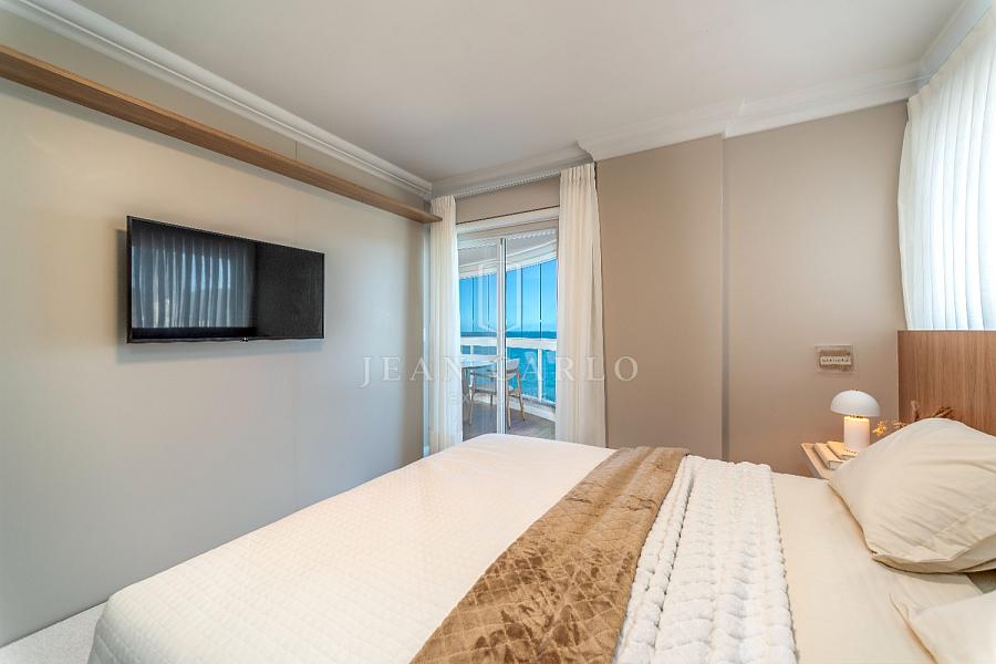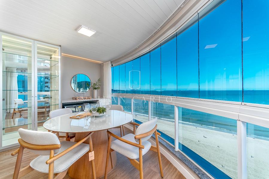 A varanda é um destaque à parte: moderna, com vidro panorâmico que garante a vista privilegiada da praia, tornando o espaço ideal tanto para momentos de lazer quanto de contemplação.