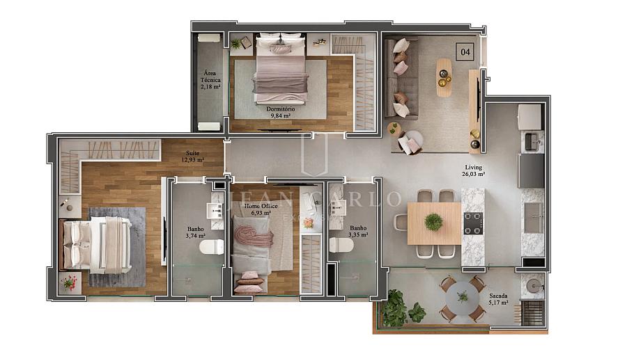 Com torre única e poucos apartamentos por andar, o projeto oferece mais privacidade e tranquilidade para os moradores. As plantas foram pensadas para o dia a dia, com ambientes bem distribuídos, ótima iluminação natural e sacada com churrasqueira, proporcionando conforto e praticidade.