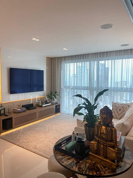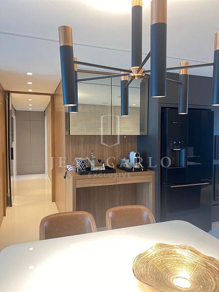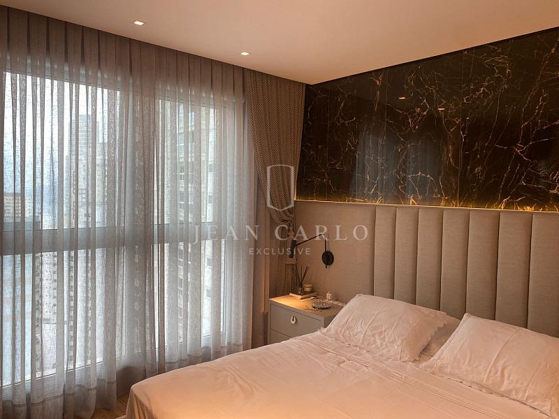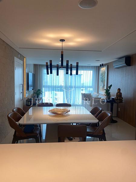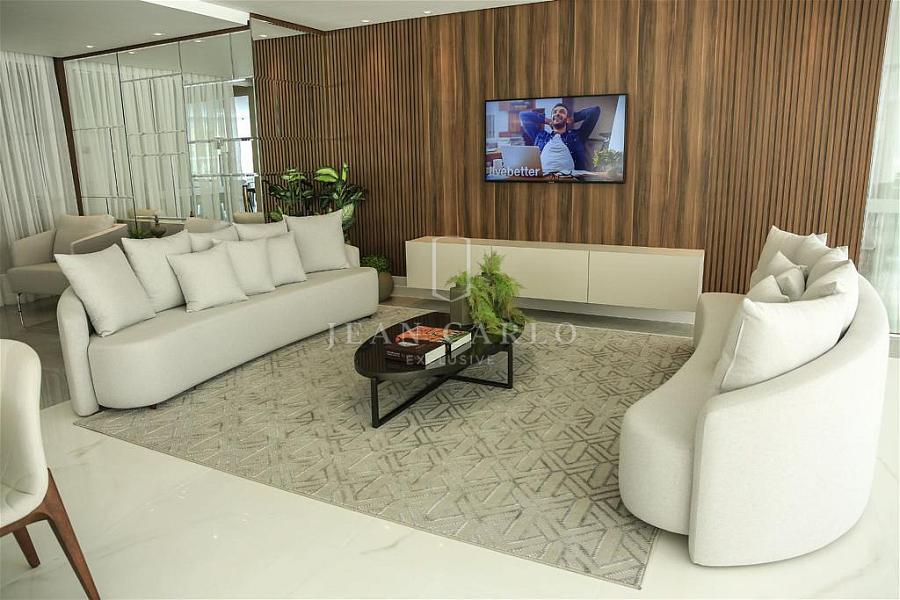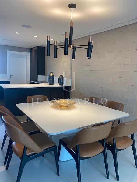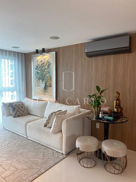 Apartamento no Edifício Phoenix Tower da Construtora FG. Possui 3 suítes, uma delas com closet, sala ampla integrada com a cozinha, com vista mar e com vista para o rio, churrasqueira a gás, lavabo, lavanderia e área técnica. Mobiliado, equipado e decorado. Móveis com assinatura. Sala automatizada. Persianas elétricas automatizadas. Três vagas de garagem. Box de praia.