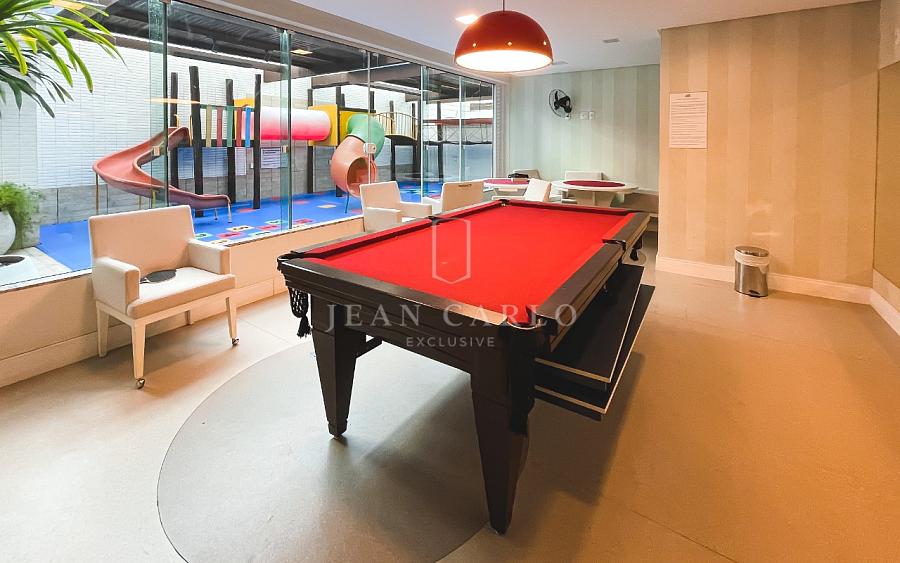 O empreendimento possui área de lazer completa, com piscina com raia, sala de jogos, cinema, salão de festas, cozinha gourmet, churrasqueira coletiva, academia e playground