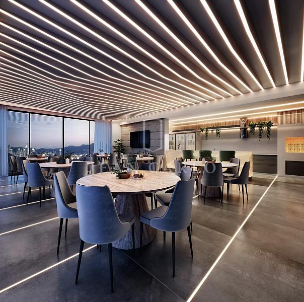 • Acabamento de alto padrão, com porcelanato, rebaixo em gesso, infraestrutura para ar-condicionado, aquecimento a gás e fechadura eletrônica/biométrica