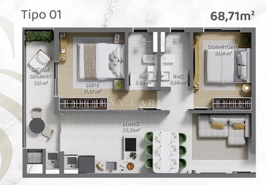69,00 m² de área privativa