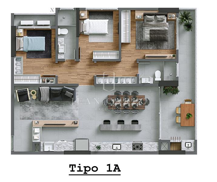 O imóvel dispõe de 1 suíte + 2 dormitórios, living integrado, cozinha funcional e ambientes bem iluminados. Conta com acabamentos premium, como porcelanato, rebaixo em gesso e esquadrias de alto desempenho.