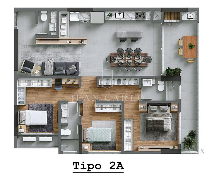 O imóvel dispõe de 1 suíte + 2 dormitórios, living integrado, cozinha funcional e ambientes bem iluminados. Conta com acabamentos premium, como porcelanato, rebaixo em gesso e esquadrias de alto desempenho.