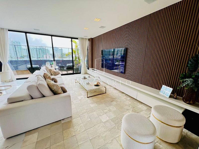 • Belíssima cobertura tem 360m² 4 suítes, piscina privativa, hidromassagem, finamente mobiliada, decorada e climatizada, conta com 3 vagas de garagem.