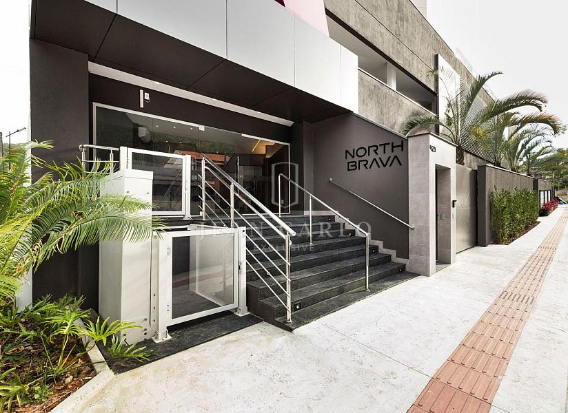 • MOBILIADO NA PRAIA BRAVA – Studio no Edifício North Brava, na Praia Brava em Itajaí, com 39m² privativos, distribuídos em 01 dormitório, banheiro social, living integrado com sala de estar e jantar, cozinha, sacada com churrasqueira, área de serviço e 1 vagas de garagem (sendo 01 dupla).